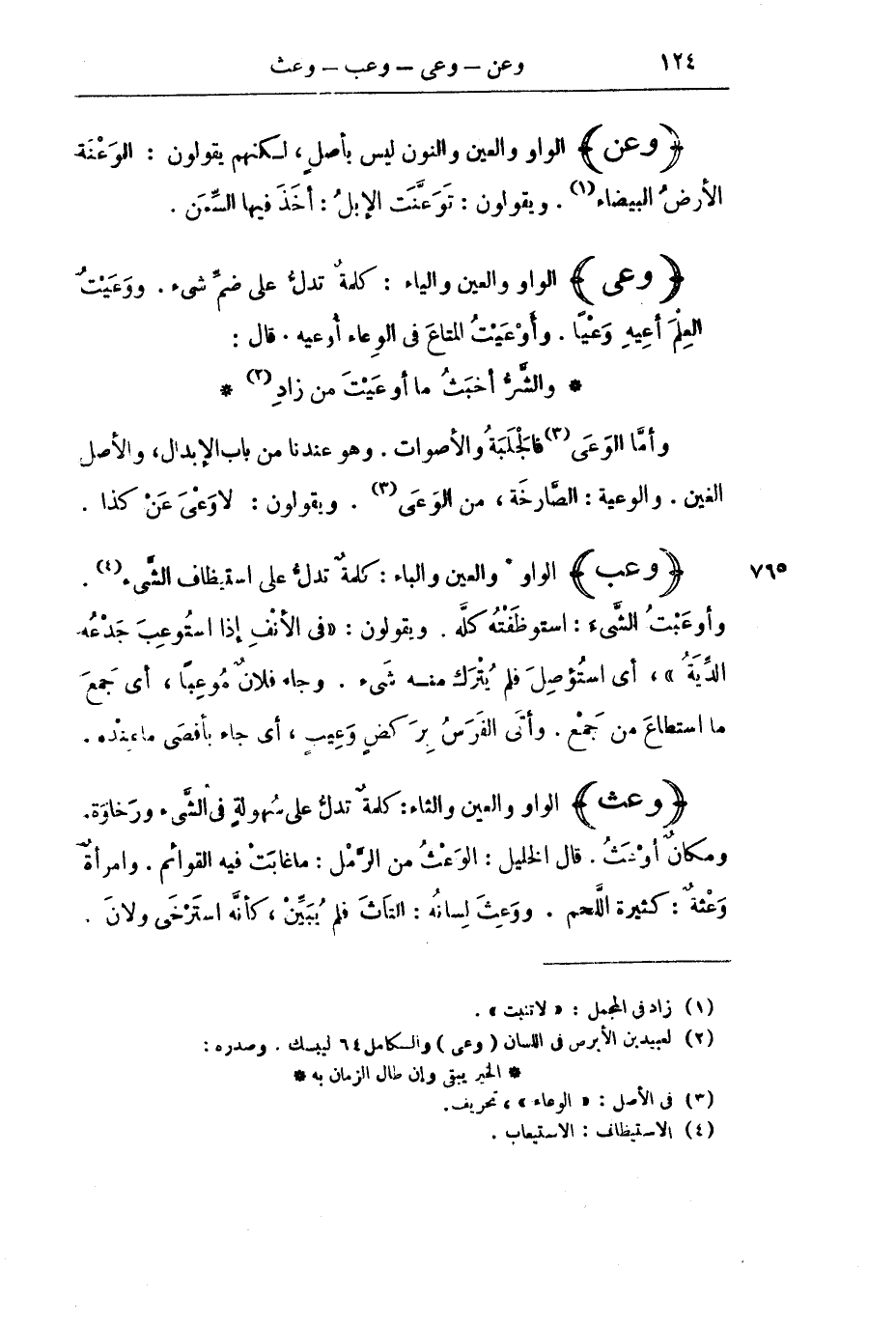 وَأَمَّا الْوَعَى فَالْجَلَبَةُ وَالْأَصْوَاتُ. وَهُوَ عِنْدَنَا مِنْ بَابِ الْإِبْدَالِ، وَالْأَصْلُ الْغَيْنُ. وَالْوَعِيَّةُ: الصَّارِخَةُ، مِنَ الْوَعَى. وَيَقُولُونَ: لَا وَعْيَ عَنْ كَذَا.