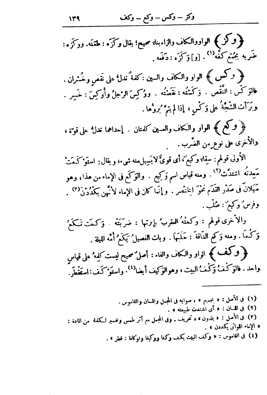 وَالْأُخْرَى قَوْلُهُمْ: وَكَعَتْهُ الْعَقْرَبُ بِإِبْرَتِهَا: ضَرَبَتْهُ. وَكَعَتْ تَكَعُ وَكْعًا. وَمِنْهُ وَكَعَ النَّاقَةَ: حَلَبَهَا. وَبَاتَ الْفَصِيلُ يَكَعُ أُمَّهُ اللَّيْلَةَ.