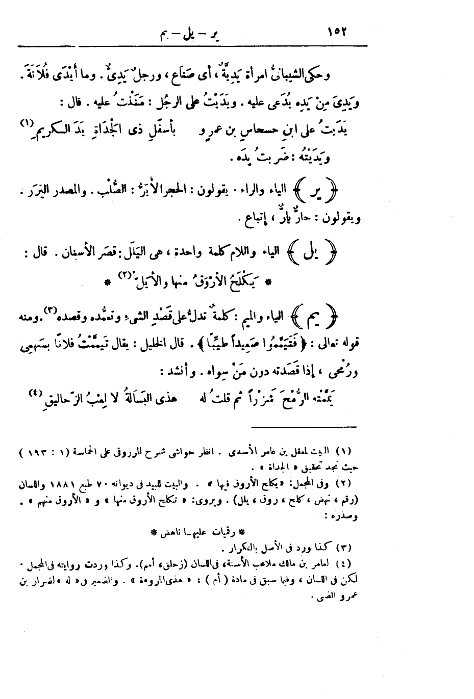 وَحَكَى الشَّيْبَانِيُّ امْرَأَةٌ يَدِيَّةٌ، أَيْ صَنَاعٌ، وَرَجُلٌ يَدِيٌّ. وَمَا أَيْدَى فُلَانَةَ. وَيَدِيَ مِنْ يَدِهِ يُدْعَى عَلَيْهِ. وَيَدَيْتُ عَلَى الرَّجُلِ: مَنَنْتُ عَلَيْهِ. قَالَ:
