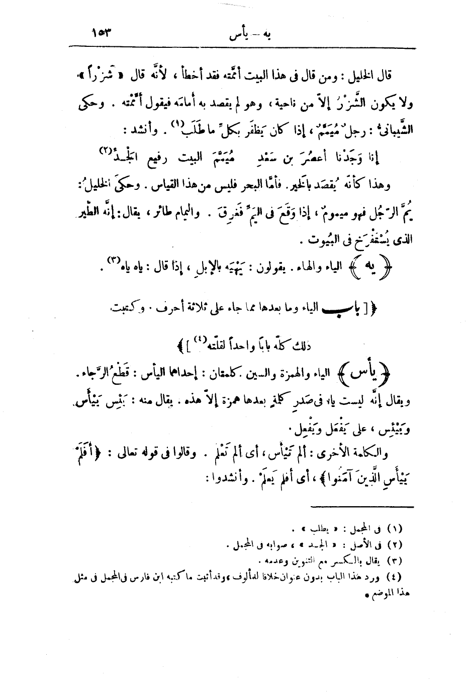 [بَابُ الْيَاءِ وَمَا بَعْدَهَا مِمَّا جَاءَ عَلَى ثَلَاثَةِ أَحْرُفٍ]