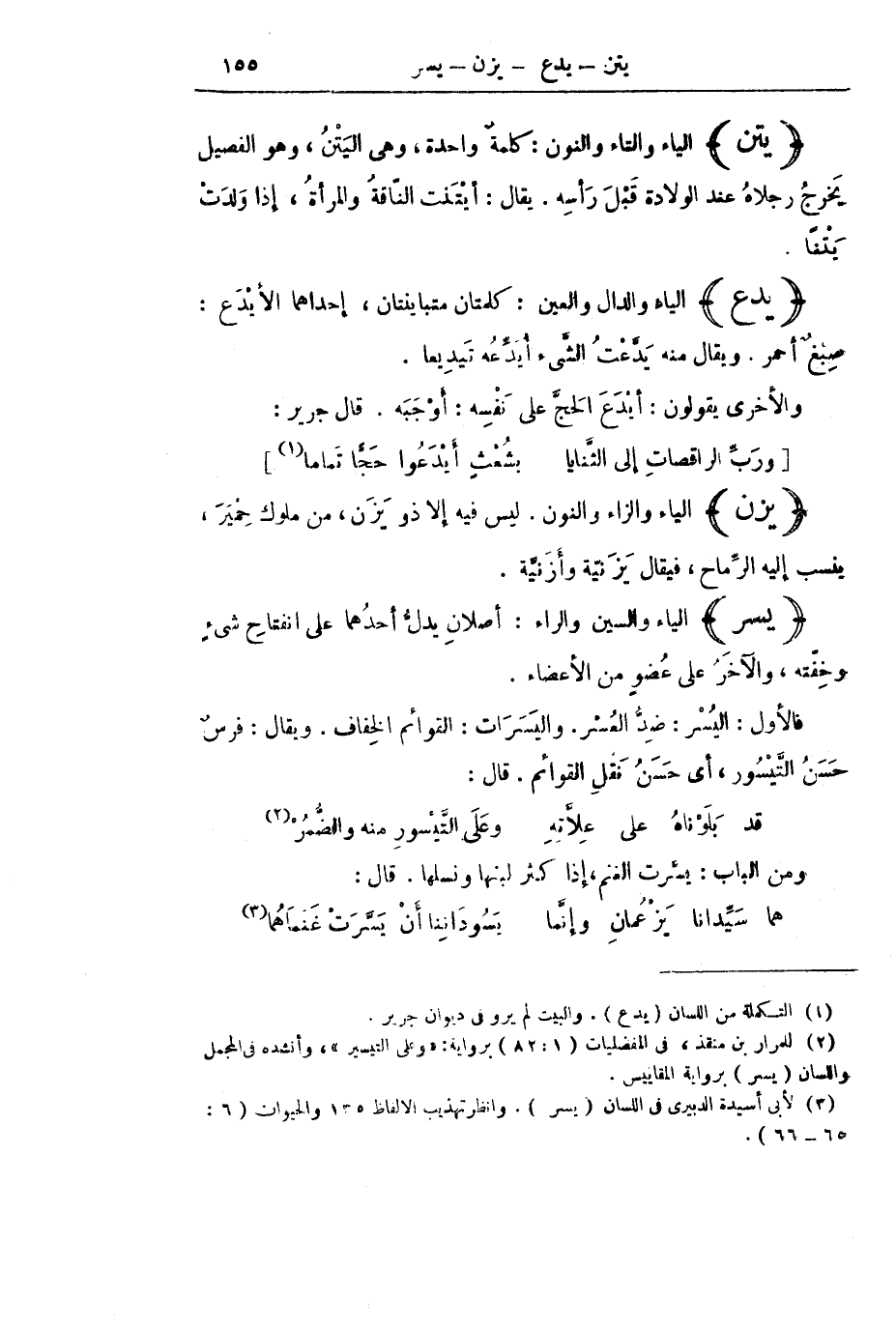 (يَتَنَ) الْيَاءُ وَالتَّاءُ وَالنُّونُ: كَلِمَةٌ وَاحِدَةٌ، وَهِيَ الْيَتْنُ، وَهُوَ الْفَصِيلُ يَخْرُجُ رِجْلَاهُ عِنْدَ الْوِلَادَةِ قَبْلَ رَأْسِهِ. يُقَالُ: أَيْتَنَتِ النَّاقَةُ وَالْمَرْأَةُ، إِذَا وَلَدَتْ يَتْنًا.