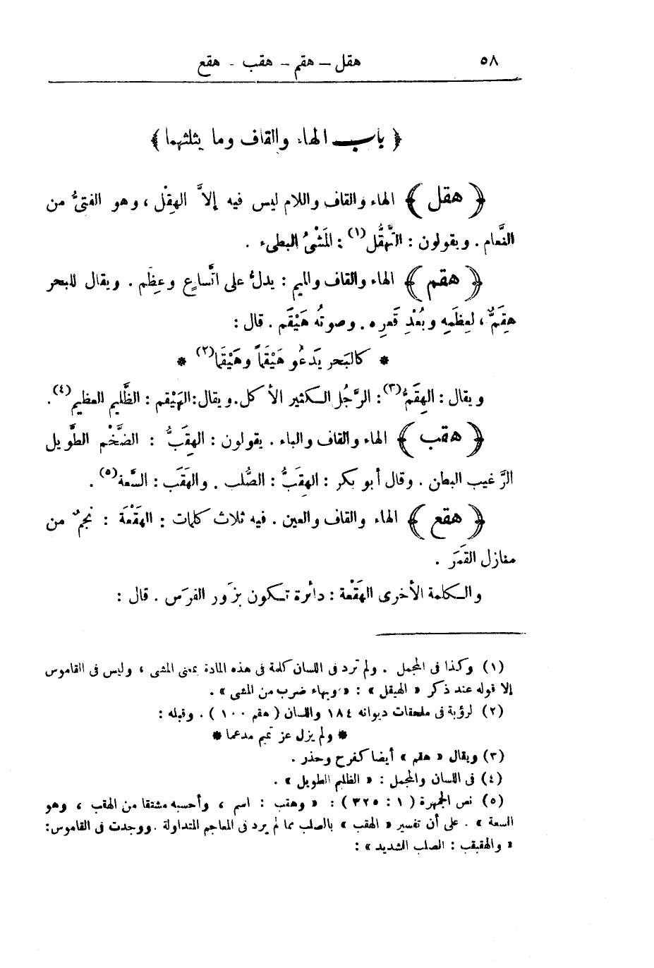 [بَابُ الْهَاءِ وَالْقَافِ وَمَا يَثْلِثُهُمَا]