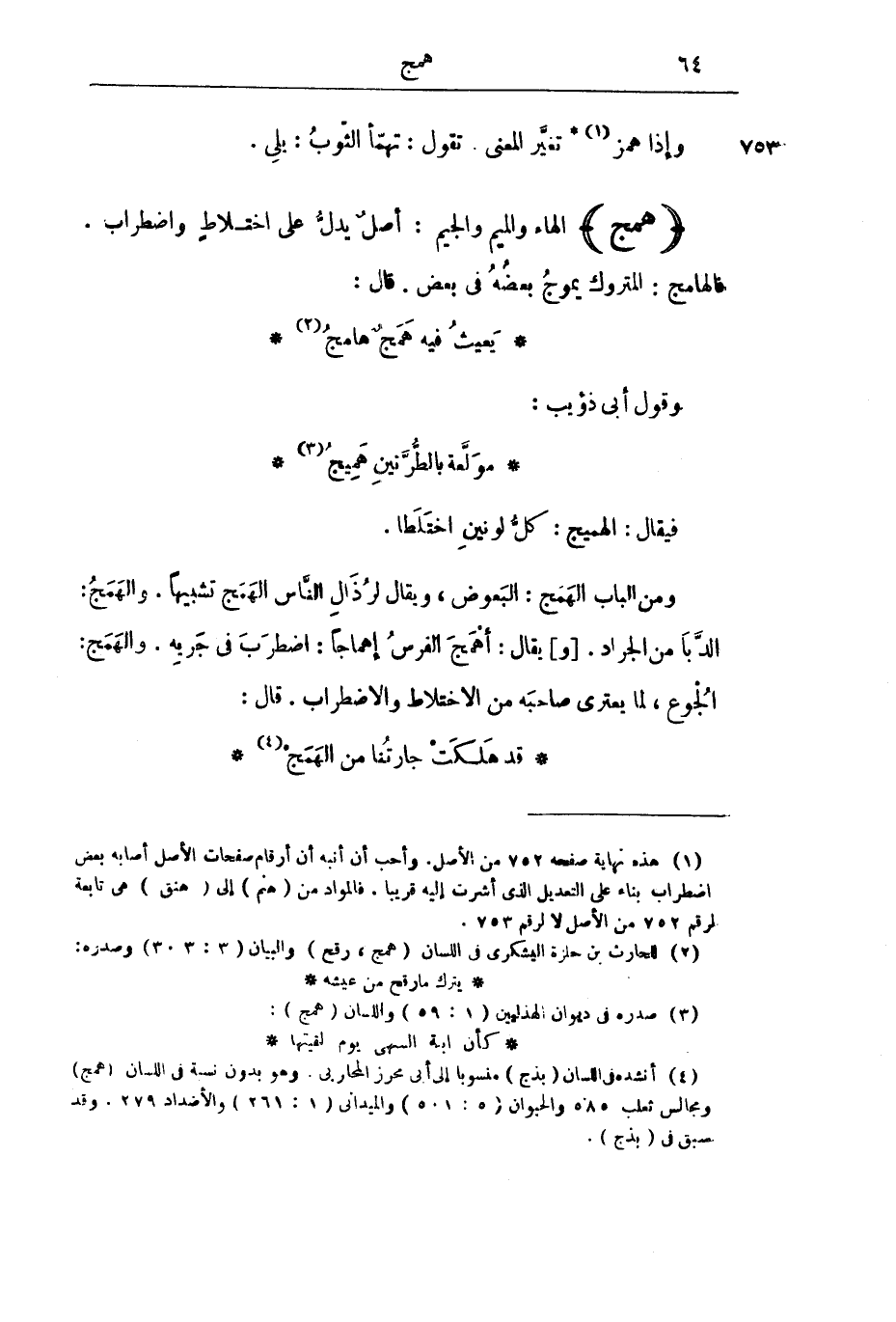 (هَمَجَ) الْهَاءُ وَالْمِيمُ وَالْجِيمُ: أَصْلٌ يَدُلُّ عَلَى اخْتِلَاطٍ وَاضْطِرَابٍ. فَالْهَامِجُ: الْمَتْرُوكُ يَمُوجُ بَعْضُهُ فِي بَعْضٍ. قَالَ: