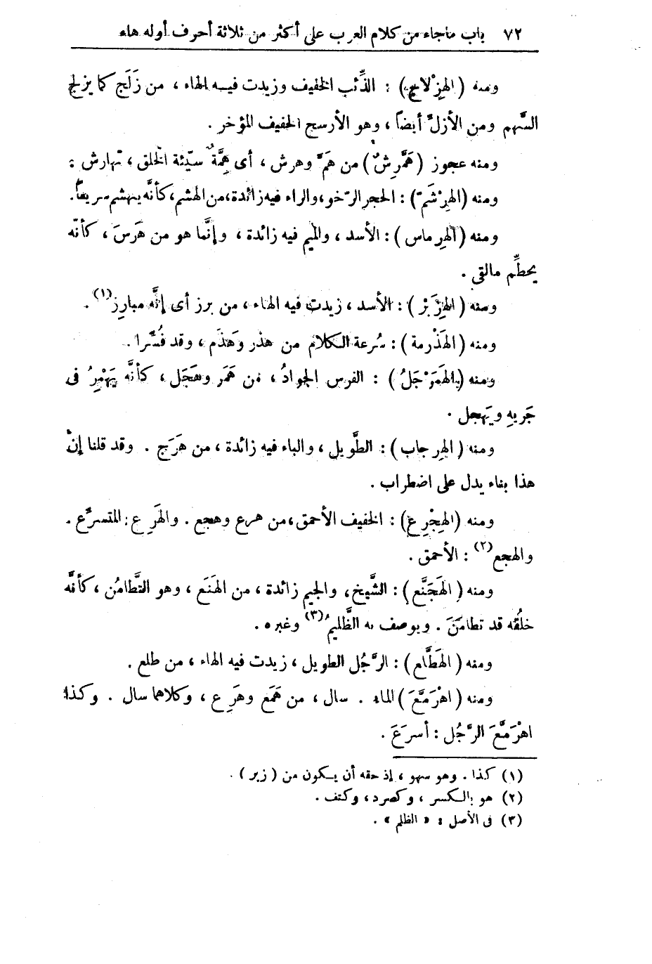 وَمِنْهُ (الْهِزْلَاجُ) : الذِّئْبُ الْخَفِيفُ وَزِيدَتْ فِيهِ الْهَاءُ، مِنْ زَلَجَ كَمَا يَزْلَجُ السَّهْمُ وَمِنَ الْأَزَلِّ أَيْضًا، وَهُوَ الْأَرْسَحُ الْخَفِيفُ الْمُؤَخَّرِ.