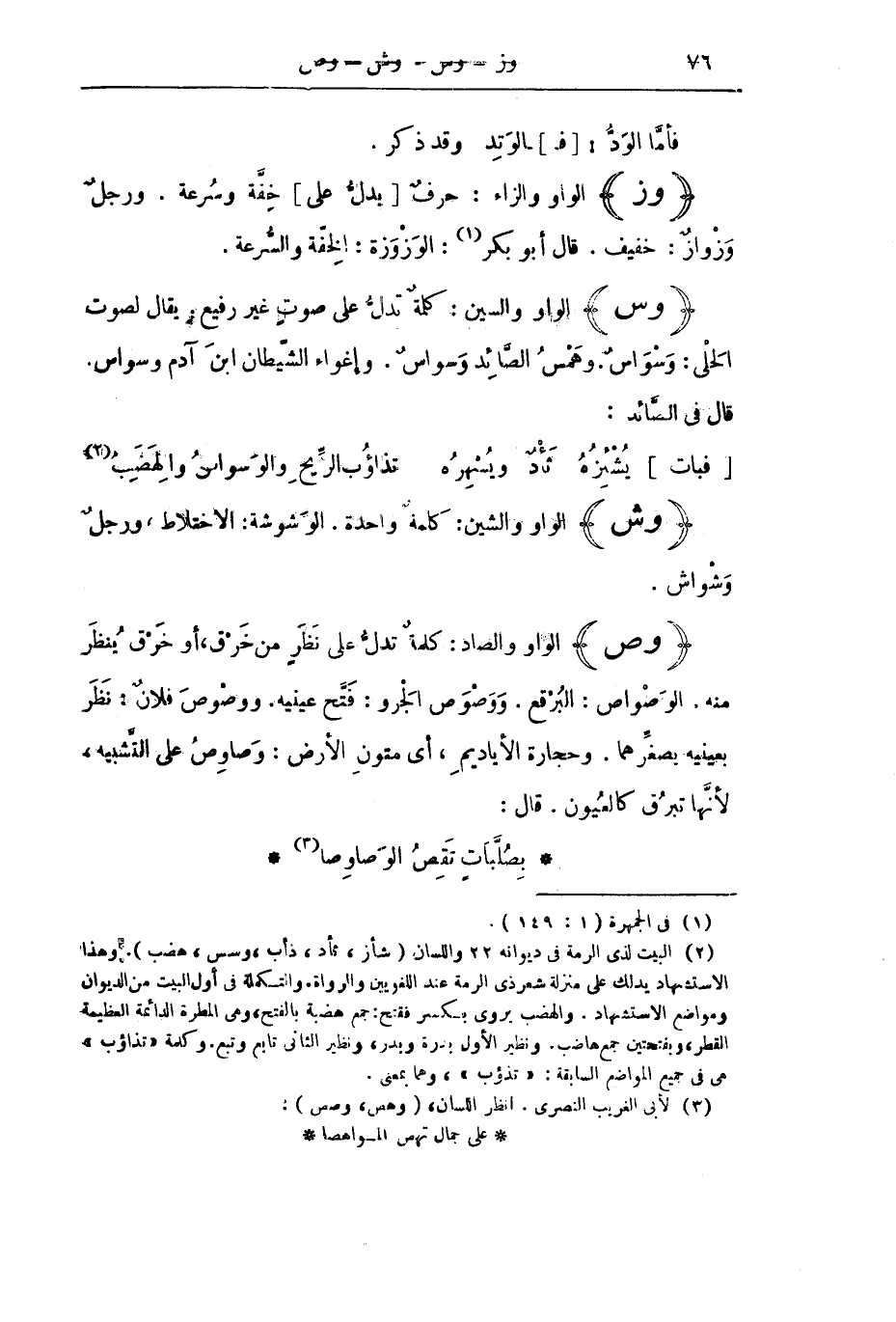 بِصُلَّبَاتٍ تَقِصُ الْوَصَاوِصَا