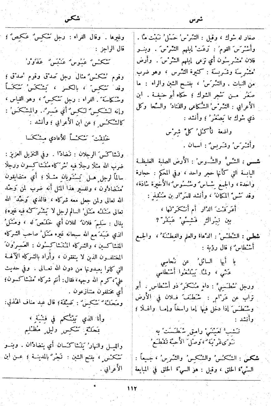 شكس: الشَّكُسُ والشَّكِسُ والشَّرِسُ، جميعاً: السَّيِءُ الخلق، وَقِيلَ: هُوَ السيِءُ الْخُلُقِ فِي الْمُبَايَعَةِ وَغَيْرِهَا. وَقَالَ الْفَرَّاءُ: رَجُلٌ شَكِسٌ عَكِصٌ؛ قَالَ الرَّاجِزُ: