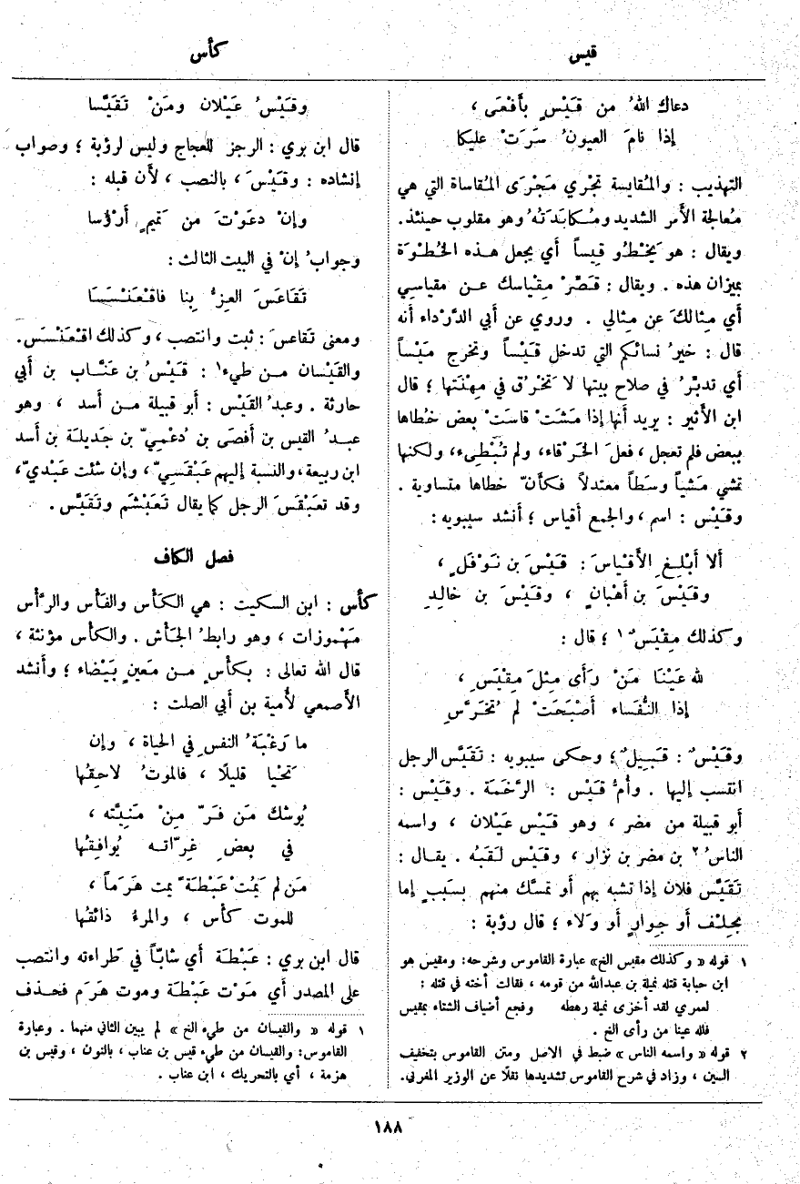 (4). 1 قوله" والقيسان من طيء إلخ" لم يبين الثاني منهما. وعبارة القاموس: والقيسان من طيء قَيْس بن عناب، بالنون، وقَيْس بن هزمة، أي بالتحريك، بن عناب.
