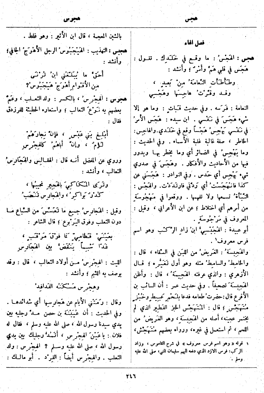 هجرس: الهِجْرِسُ، بِالْكَسْرِ: وَلَدُ الثَّعْلَبِ، وعَمَّ بَعْضُهُمْ بِهِ نَوْعَ الثَّعَالِبِ: وَاسْتَعَارَهُ الْحُطَيْئَةُ لِلْفَرَزْدَقِ فَقَالَ: