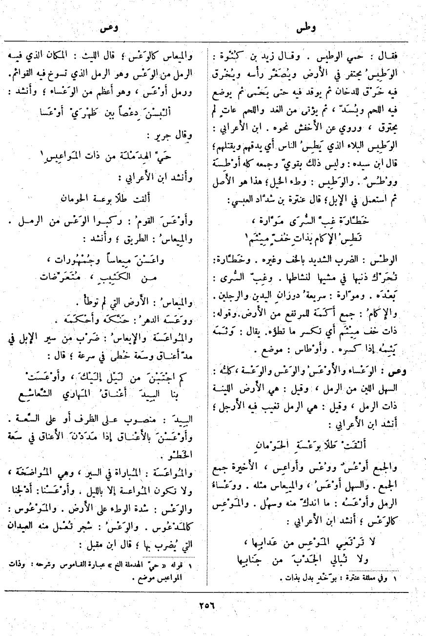وعس: الوَعْساء والأَوْعَسُ والوَعْس والوَعْسة، كلُّه: السَّهْلُ اللَّيِّنُ مِنَ الرَّمْلِ، وَقِيلَ: هِيَ الأَرض اللَّيِّنَةُ ذَاتُ الرَّمْلِ، وَقِيلَ: هِيَ الرَّمْلُ تَغِيبُ فِيهِ الأَرجل؛ أَنشد ابْنُ الأَعرابي:
