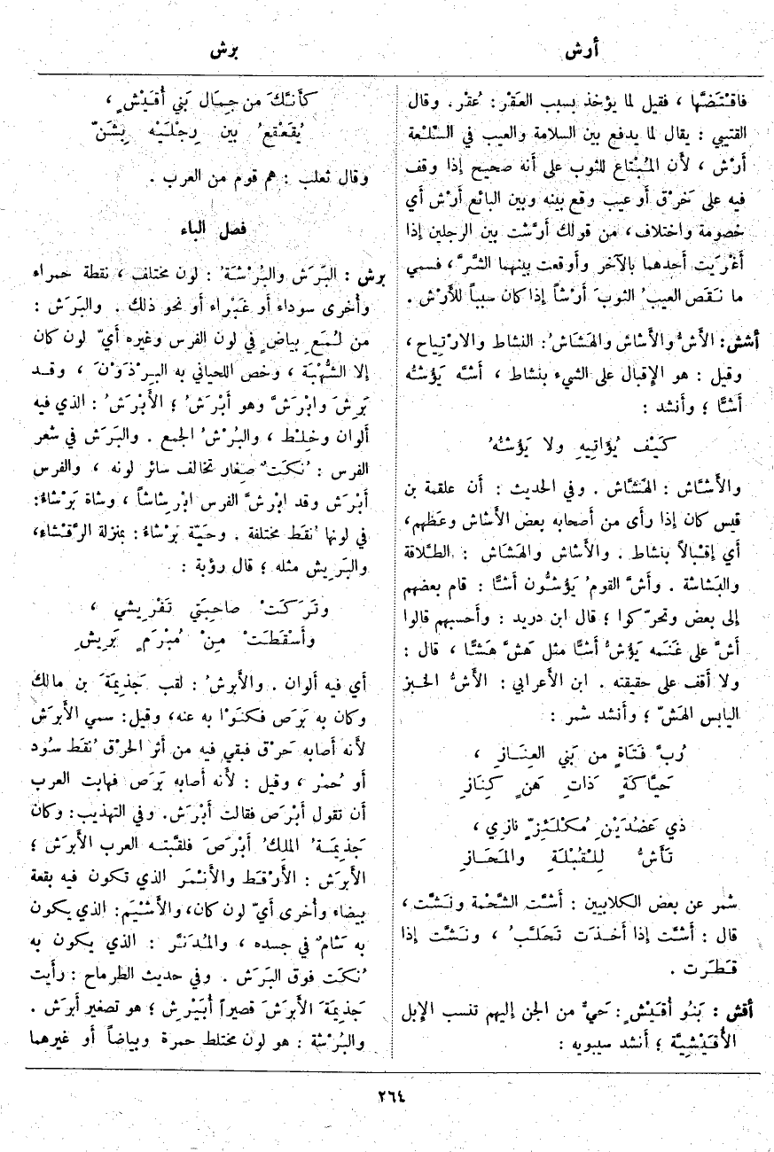 برش: البَرَش والبُرْشَةُ: لَوْنٌ مُخْتَلِفٌ، نُقْطَةٌ حَمْرَاءُ وأُخرى سَوْدَاءُ أَو غَبْراء أَو نَحْوُ ذَلِكَ. والبَرَش: مِنْ لُمَعِ بياضٍ فِي لَوْنِ الْفَرَسِ وَغَيْرِهِ أَيّ لَوْنٍ كَانَ إِلا الشُّهْبَة، وَخَصَّ اللِّحْيَانِيُّ بِهِ البِرْذَوْنَ، وَقَدْ بَرِشَ وابْرَشَّ وَهُوَ أَبْرَشُ؛ الأَبْرَشُ: الَّذِي فِيهِ أَلوان وخِلْط، والبُرْشُ الْجَمْعُ. والبَرَش فِي شَعْرِ الْفَرَسِ: نُكَتٌ صِغار تَخَالِفُ سَائِرَ لَوْنِهِ، وَالْفَرَسُ أَبْرَش وَقَدِ ابْرشَّ الْفَرَسُ ابْرِشاشاً، وَشَاةٌ بَرْشاءُ: فِي لَوْنِهَا نُقَط مُخْتَلِفَةٌ. وحَيَّة بَرْشاءُ: بِمَنْزِلَةِ الرَّقْشاءِ، والبَرِيش مِثْلُهُ؛ قَالَ رُؤْبَةُ: