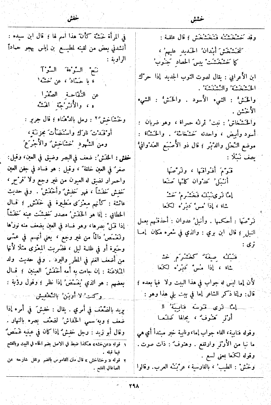 (1). قوله [عن خُشِّه] هكذا ضبط في الأَصل بضم الخاء في البيت وبالفتح فيما قبله.