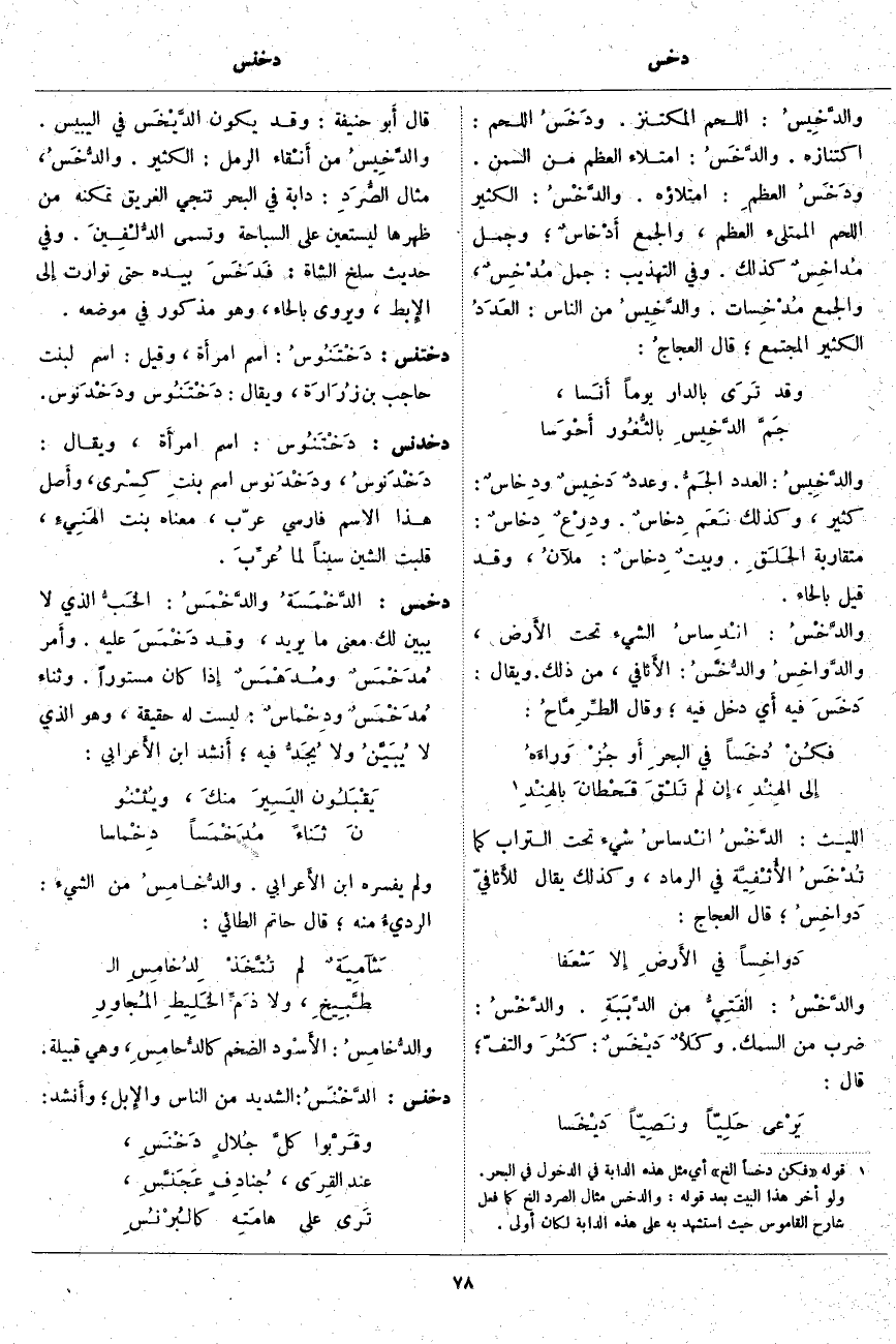دختنس: دَخْتَنُوسُ: اسْمُ امرأَة، وَقِيلَ: اسْمٌ لِبِنْتِ حَاجِبِ بْنِ زُرَارَة، وَيُقَالُ: دَخْتَنُوس ودَخْدَنوس.