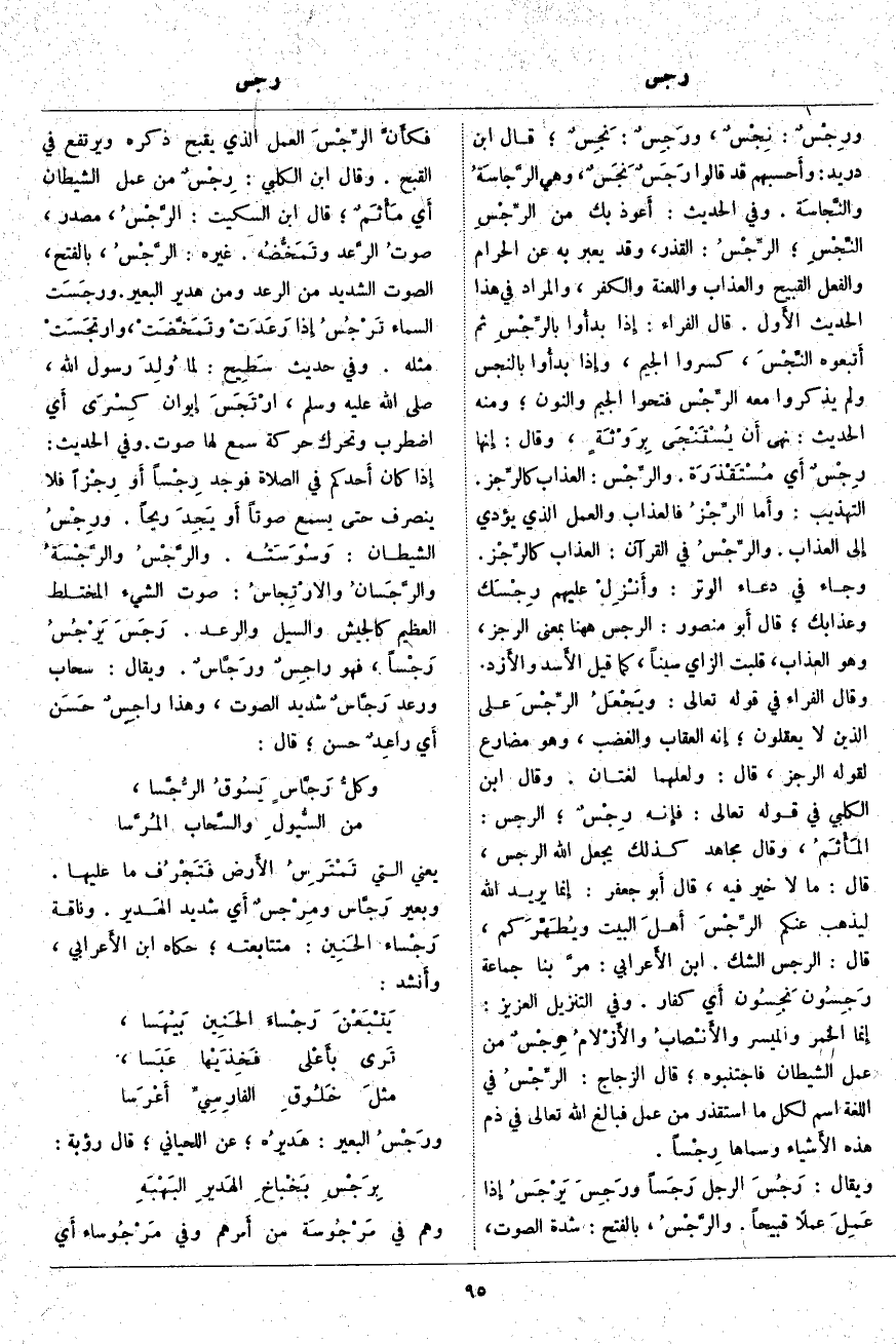 ، قَالَ: الرِّجْسُ الشَّكُّ. ابْنُ الأَعرابي: مرَّ بَنَا جَمَاعَةٌ رَجِسُونَ نَجِسُونَ أَي كُفَّار. وَفِي التَّنْزِيلِ الْعَزِيزِ: إِنَّمَا الْخَمْرُ وَالْمَيْسِرُ وَالْأَنْصابُ وَالْأَزْلامُ رِجْسٌ مِنْ عَمَلِ الشَّيْطانِ فَاجْتَنِبُوهُ