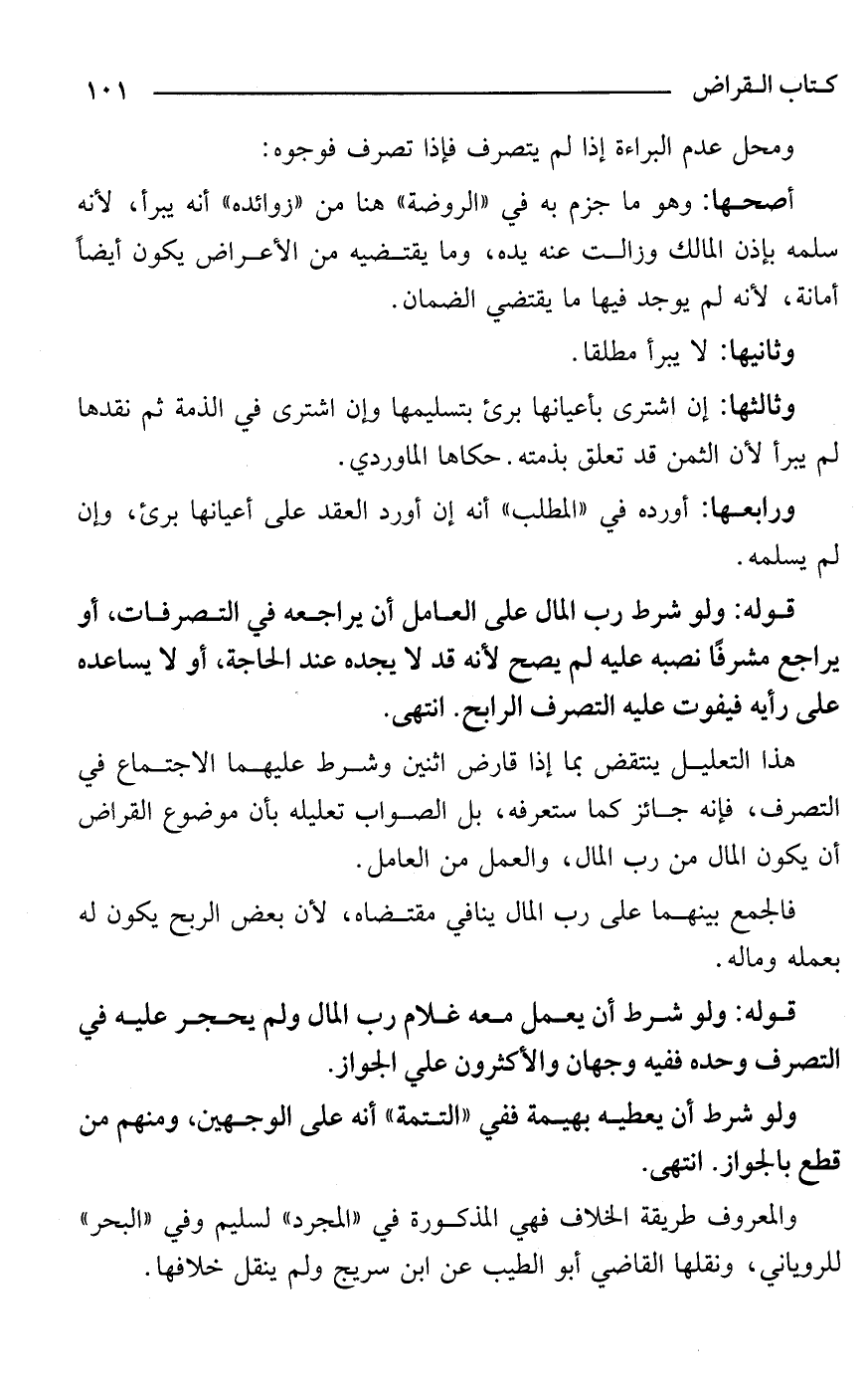 قوله: ولو شرط رب المال على العامل أن يراجعه في التصرفات، أو يراجع مشرفًا نصبه عليه لم يصح لأنه قد لا يجده عند الحاجة، أو لا يساعده على رأيه فيفوت عليه التصرف الرابح. انتهى.