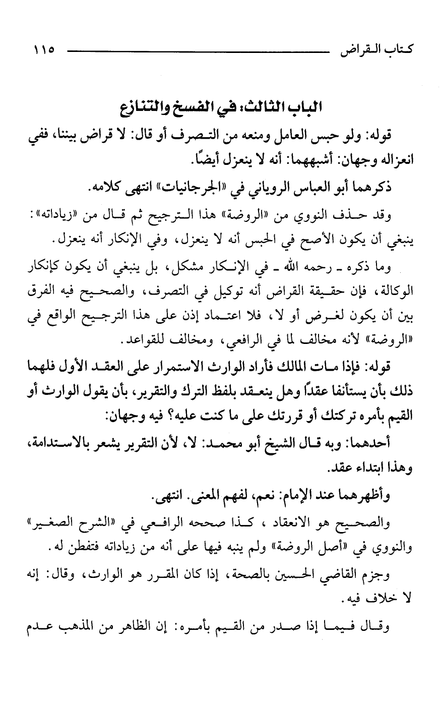 وما ذكره -رحمه الله- في الإنكار مشكل، بل ينبغي أن يكون كإنكار الوكالة، فإن حقيقة القراض أنه توكيل في التصرف، والصحيح فيه الفرق بين أن يكون لغرض أو لا، فلا اعتماد إذن على هذا الترجيح الواقع في "الروضة" لأنه مخالف لما في الرافعى, ومخالف للقواعد.