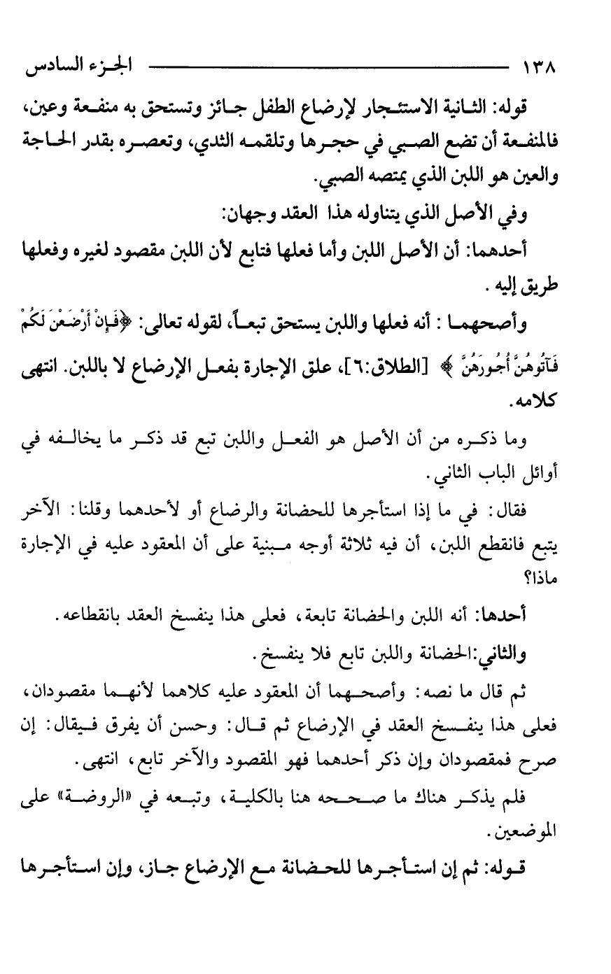 وأصحهما: أنه فعلها واللبن يستحق تبعًا، لقوله تعالى: {فَإِنْ أَرْضَعْنَ لَكُمْ فَآتُوهُنَّ أُجُورَهُنَّ} [الطلاق: 6]، علق الإجارة بفعل الإرضاع لا باللبن. انتهى كلامه.
