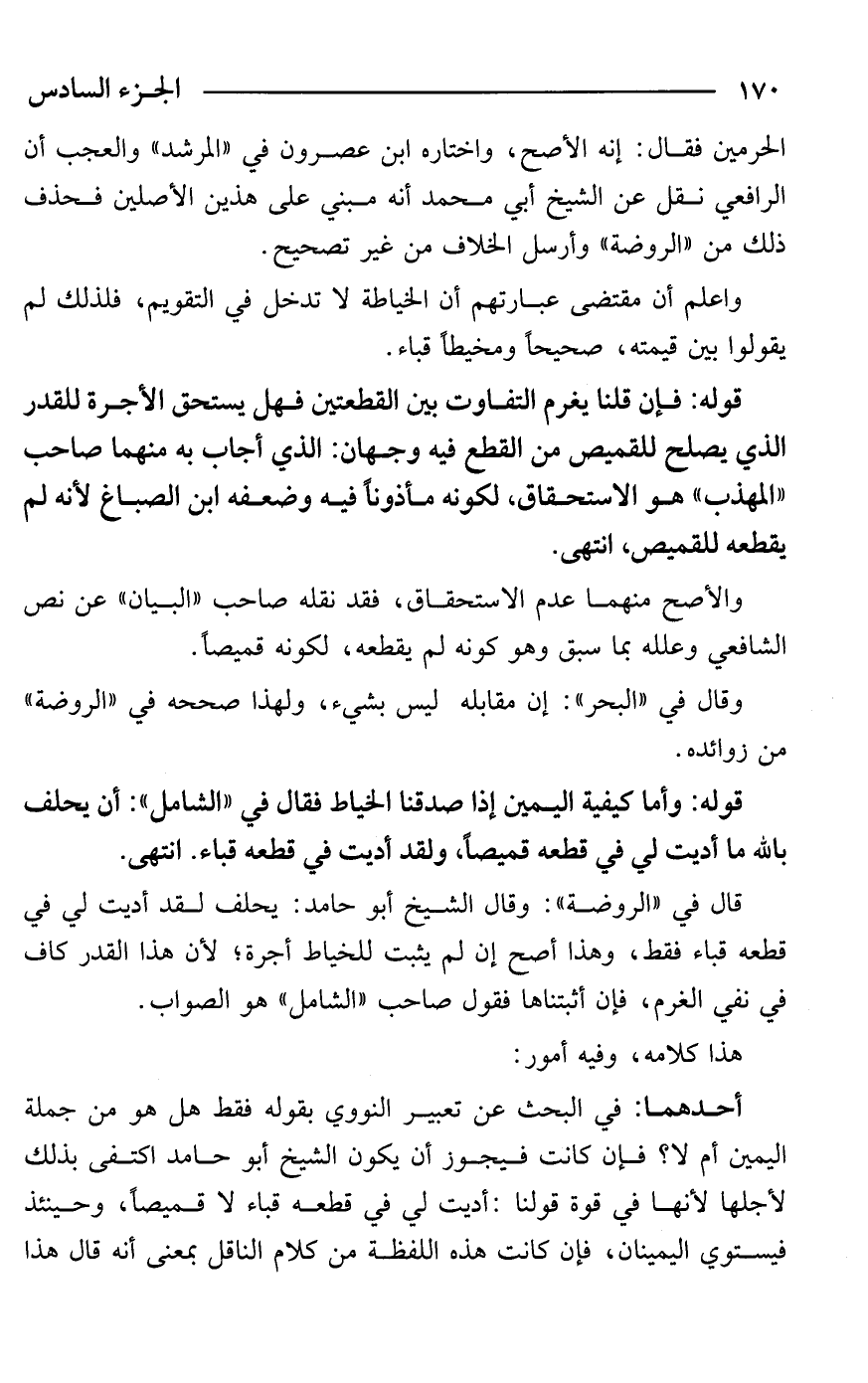 قال في "الروضة": وقال الشيخ أبو حامد: يحلف لقد أديت لي في قطعه قباء فقط، وهذا أصح إن لم يثبت للخياط أجرة؛ لأن هذا القدر كاف في نفي الغرم، فإن أثبتناها فقول صاحب "الشامل" هو الصواب.