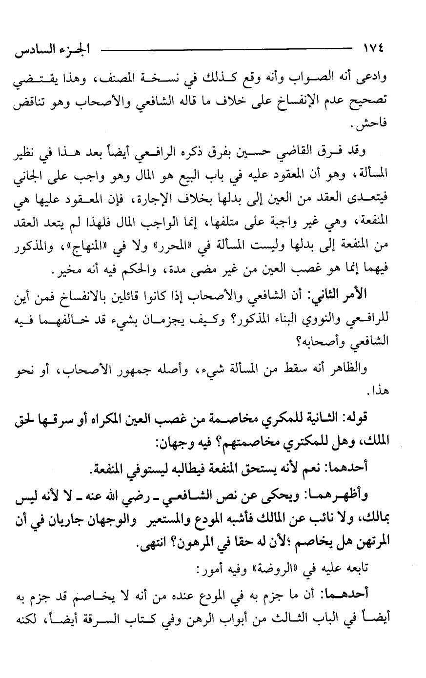 الأمر الثاني: أن الشافعي والأصحاب إذا كانوا قائلين بالانفساخ فمن أين للرافعي والنووي البناء المذكور؟ وكيف يجزمان بشيء قد خالفهما فيه الشافعي وأصحابه؟