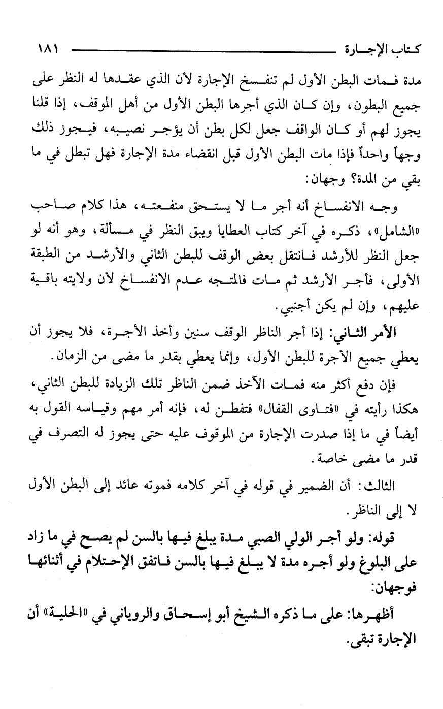 مدة فمات البطن الأول لم تنفسخ الإجارة لأن الذي عقدها له النظر على جميع البطون، وإن كان الذي أجرها البطن الأول من أهل الموقف، إذا قلنا يجوز لهم أو كان الواقف جعل لكل بطن أن يؤجر نصيبه، فيجوز ذلك وجهًا واحدًا فإذا مات البطن الأول قبل انقضاء مدة الإجارة فهل تبطل في ما بقي من المدة؟ وجهان: