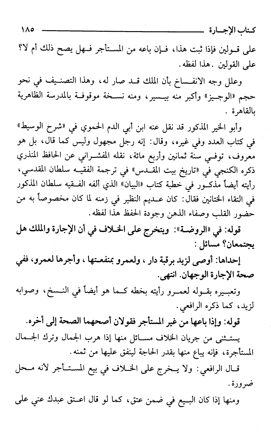 وعلل وجه الانفساخ بأن الملك قد صار له، وهذا التصنيف في نحو حجم "الوجيز" وأكبر منه بيسير، ومنه نسخة موقوفة بالمدرسة الظاهرية بالقاهرة.