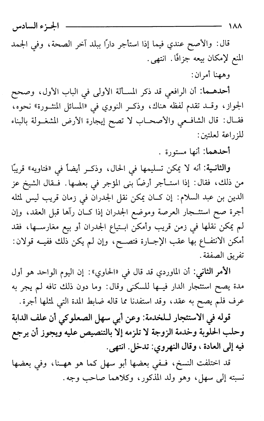 والثانية: أنه لا يمكن تسليمها في الحال، وذكر أيضًا في "فتاويه" قريبًا من ذلك، فقال: إذا استأجر أرضًا بنى المؤجر في بعضها. فقال الشيخ عز الدين بن عبد السلام: إن كان يمكن نقل الجدران في زمان قريب ليس لمثله أجرة صح استئجار العرصة وموضع الجدران إذا كان رآها قبل العقد، وإن لم يمكن نقلها في زمن قريب وأمكن ابتياع الجدران أو بيع مغارسها، فقد أمكن الانتفاع بها عقب الإجارة فتصح، وإن لم يكن ذلك ففيه قولان: تفريق الصفقة.