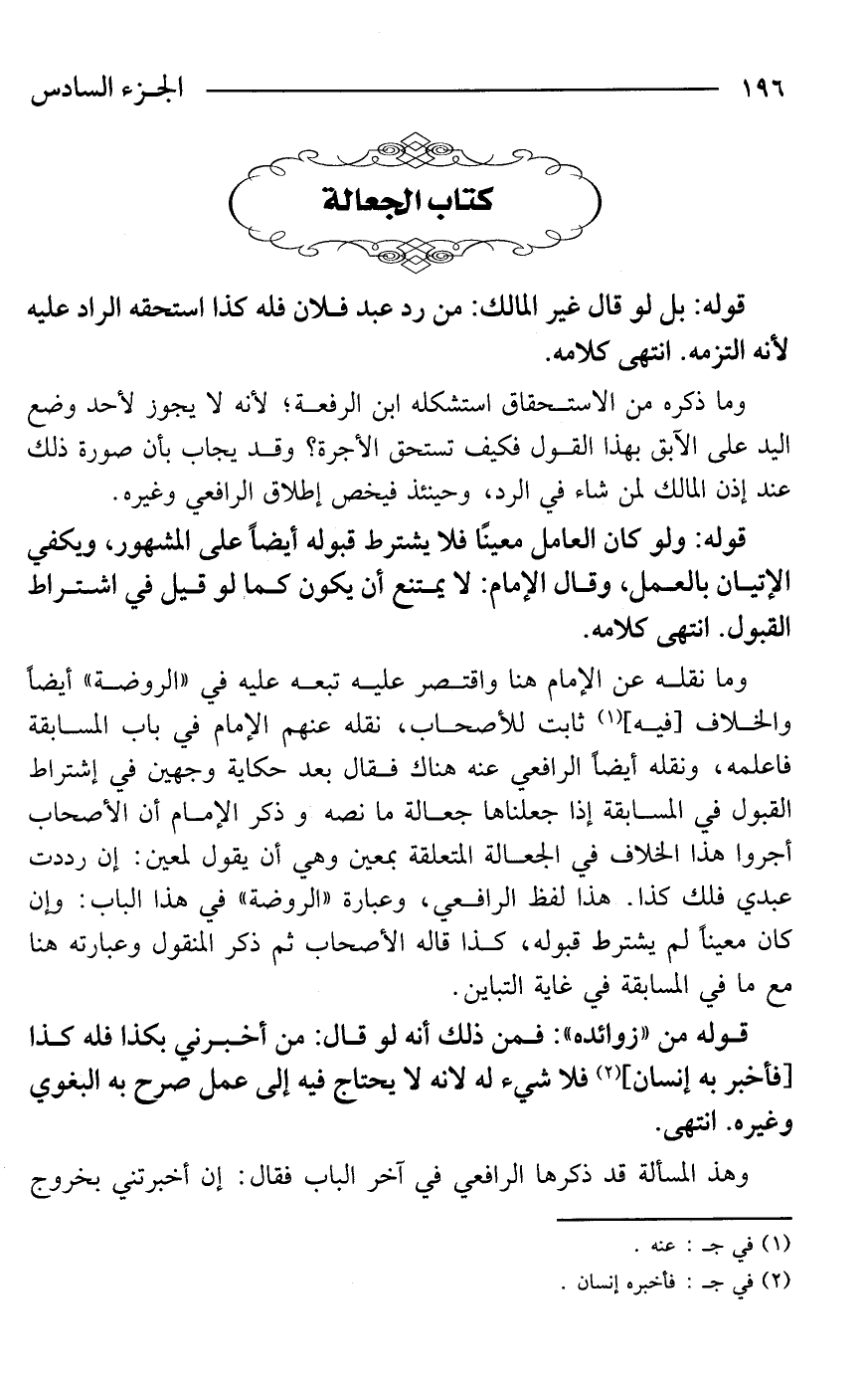 وما نقله عن الإمام هنا واقتصر عليه تبعه عليه في "الروضة" أيضًا والخلاف [فيه] (¬1) ثابت للأصحاب، نقله عنهم الإمام في باب المسابقة فاعلمه، ونقله أيضًا الرافعي عنه هناك فقال بعد حكاية وجهين في إشتراط القبول في المسابقة إذا جعلناها جعالة ما نصه وذكر الإمام أن الأصحاب أجروا هذا الخلاف في الجعالة المتعلقة بمعين وهي أن يقول لمعين: إن رددت عبدي فلك كذا. هذا لفظ الرافعي، وعبارة "الروضة" في هذا الباب: وإن كان معينًا لم يشترط قبوله، كذا قاله الأصحاب ثم ذكر المنقول وعبارته هنا مع ما في المسابقة في غاية التباين.