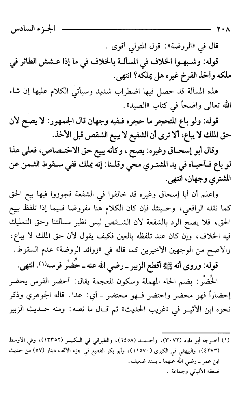 قوله: وروى أنه - صَلَّى اللَّهُ عَلَيْهِ وَسَلَّمَ - أقطع الزبير - رضي الله عنه - حُضْر فرسه (¬1). انتهى.