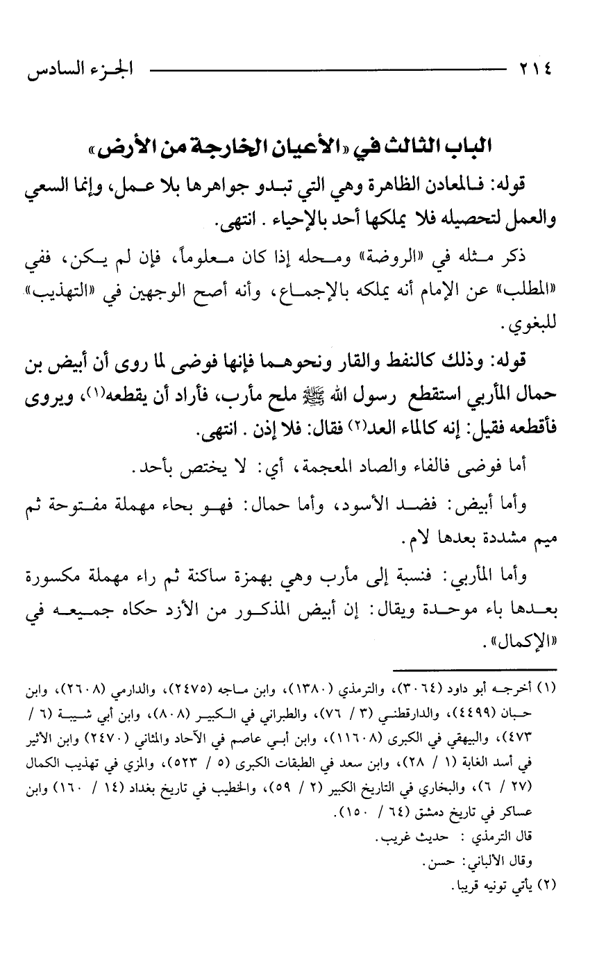 الباب الثالث في "الأعيان الخارجة من الأرض"
