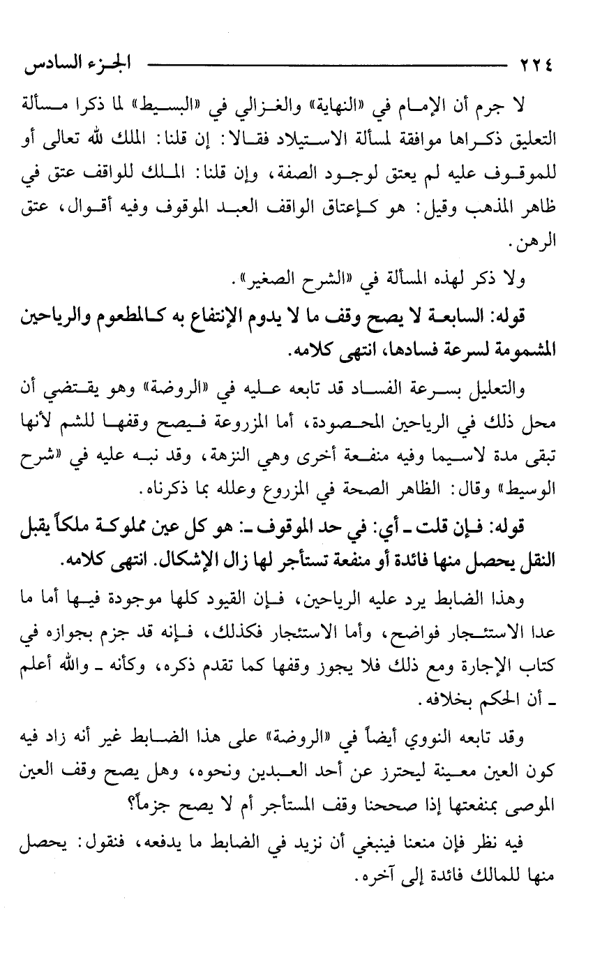 وهذا الضابط يرد عليه الرياحين، فإن القيود كلها موجودة فيها أما ما عدا الاستئجار فواضح، وأما الاستئجار فكذلك، فإنه قد جزم بجوازه في كتاب الإجارة ومع ذلك فلا يجوز وقفها كما تقدم ذكره، وكأنه -والله أعلم- أن الحكم بخلافه.