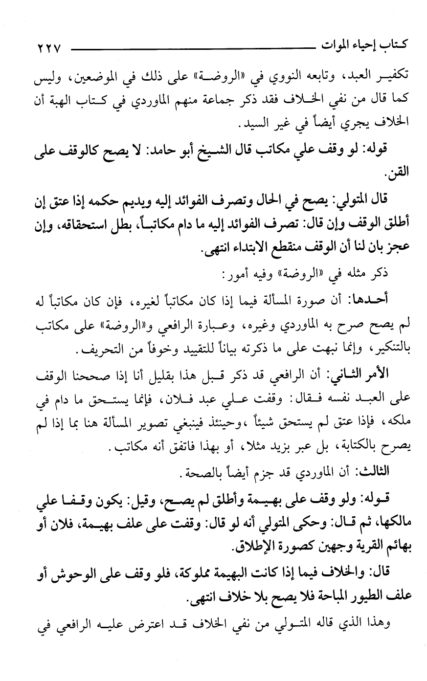 الأمر الثاني: أن الرافعي قد ذكر قبل هذا بقليل أنا إذا صححنا الوقف على العبد نفسه فقال: وقفت علي عبد فلان، فإنما يستحق مادام في ملكه، فإذا عتق لم يستحق شيئًا، وحينئذ فينبغي تصوير المسألة هنا بما إذا لم يصرح بالكتابة، بل عبر بزيد مثلا، أو بهذا فاتفق أنه مكاتب.