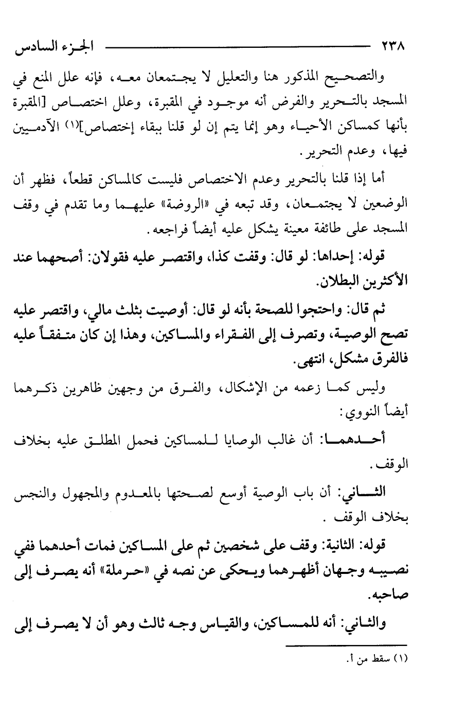 أما إذا قلنا بالتحرير وعدم الاختصاص فليست كالمساكن قطعًا، فظهر أن الوضعين لا يجتمعان، وقد تبعه في "الروضة" عليهما وما تقدم في وقف المسجد على طائفة معينة يشكل عليه أيضًا فراجعه.
