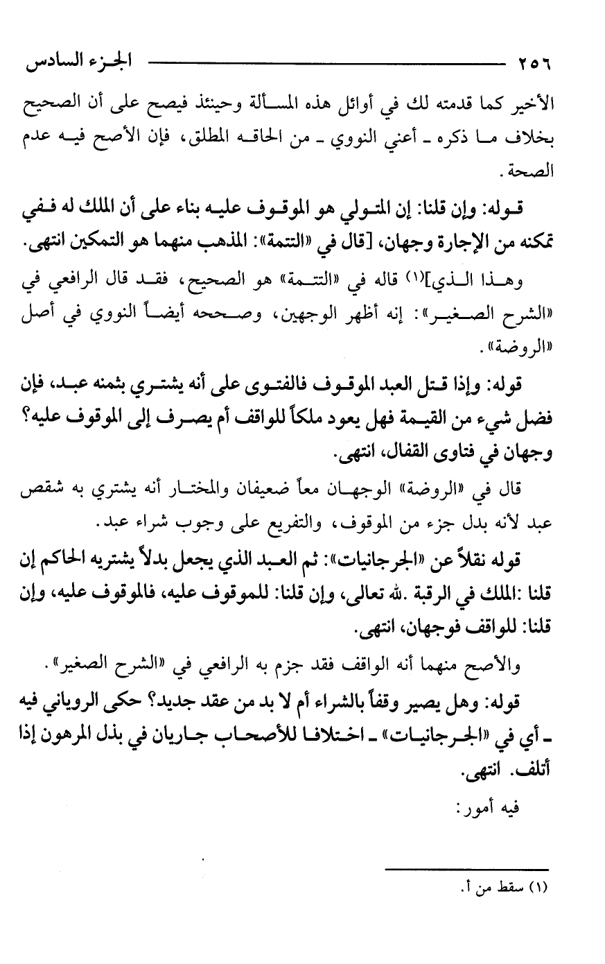 قوله نقلًا عن "الجرجانيات": ثم العبد الذي يجعل بدلًا يشتريه الحاكم إن قلنا: الملك في الرقبة لله تعالى، وإن قلنا: للموقوف عليه، فالموقوف عليه، وإن قلنا: للواقف فوجهان، انتهى.