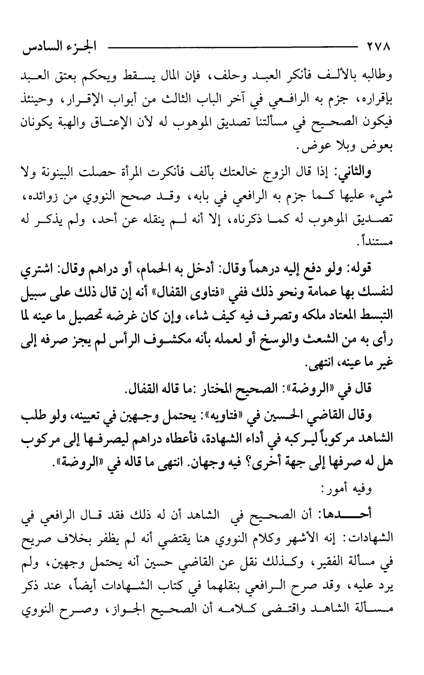 أحدها: أن الصحيح في الشاهد أن له ذلك فقد قال الرافعي في الشهادات: إنه الأشهر وكلام النووي هنا يقتضي أنه لم يظفر بخلاف صريح في مسألة الفقير، وكذلك نقل عن القاضي حسين أنه يحتمل وجهين، ولم يرد عليه، وقد صرح الرافعي بنقلهما في كتاب الشهادات أيضًا، عند ذكر مسألة الشاهد واقتضى كلامه أن الصحيح الجواز، وصرح النووي