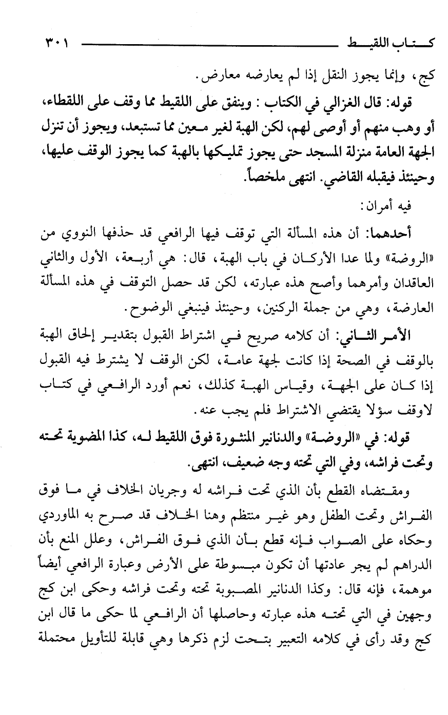 أحدهما: أن هذه المسألة التي توقف فيها الرافعي قد حذفها النووي من "الروضة" ولما عدا الأركان في باب الهبة، قال: هي أربعة، الأول والثاني العاقدان وأمرهما وأصح هذه عبارته، لكن قد حصل التوقف في هذه المسألة العارضة، وهي من جملة الركنين، وحينئذ فينبغي الوضوح.