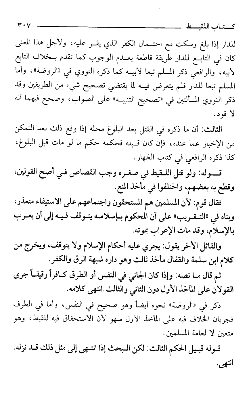 والقائل الأخر يقول: يجري عليه أحكام الإسلام ولا يتوقف، ويخرج من كلام ابن سلمة والقفال مأخذ ثالث وهو داره شبهة الرق والكفر.