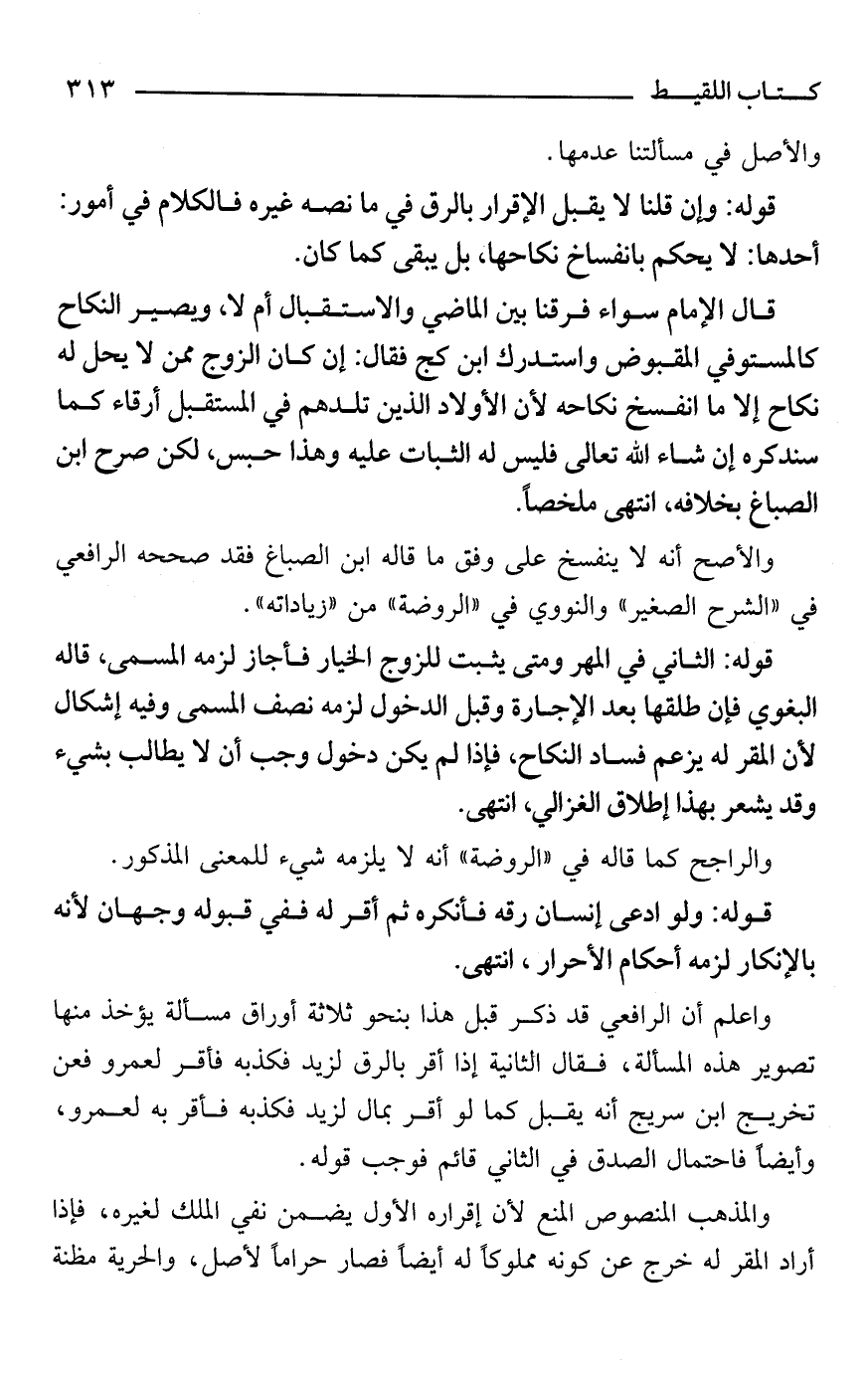 قوله: وإن قلنا لا يقبل الإقرار بالرق في ما نصه غيره فالكلام في أمور: أحدها: لا يحكم بانفساخ نكاحها، بل يبقى كما كان.
