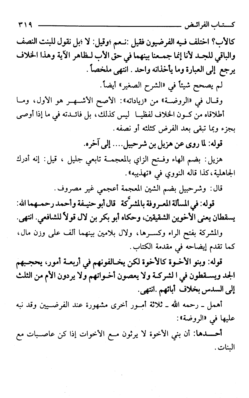 قوله: وبنو الأخوة كالأخوة لكن يخالفونهم في أربعة أمور، يحجبهم الجد ويسقطون في الشركة ولا يعصون أخواتهم ولا يردون الأم من الثلث إلى السدس بخلاف أبائهم. انتهى.
