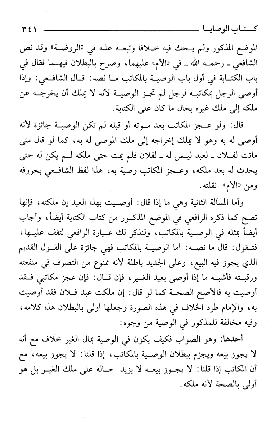 أحدها: وهو الصواب فكيف يكون في الوصية بمال الغير خلاف مع أنه لا يجوز بيعه ويجزم ببطلان الوصية بالمكاتب، إذا قلنا: لا يجوز بيعه، مع أن المكاتب إذا قلنا: لا يجوز بيعه لا يزيد حالة على ملك الغير بل هو أولى بالصحة لأنه ملكه.