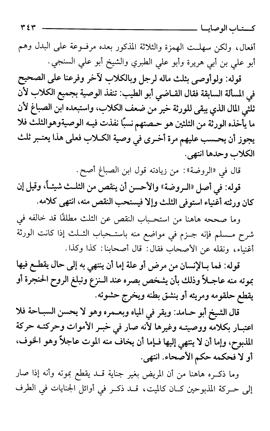 وما صححه هاهنا من استحباب النقص عن الثلث مطلقًا قد خالفه في شرح مسلم فإنه جزم في مواضع منه باستحباب الثلث إذا كانت الورثة أغنياء، ونقله عن الأصحاب فقال: قال أصحابنا: كذا وكذا.