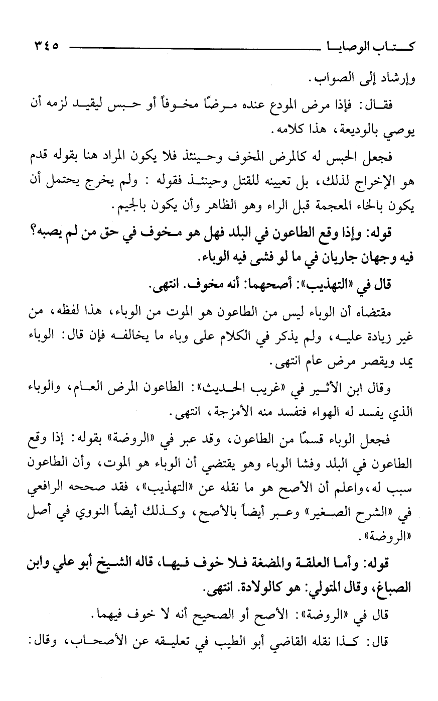 فجعل الوباء قسمًا من الطاعون، وقد عبر في "الروضة" بقوله: إذا وقع الطاعون في البلد وفشا الوباء وهو يقتضي أن الوباء هو الموت، وأن الطاعون سبب له، واعلم أن الأصح هو ما نقله عن "التهذيب"، فقد صححه الرافعي في "الشرح الصغير" وعبر أيضًا بالأصح، وكذلك أيضًا النووي في أصل "الروضة".