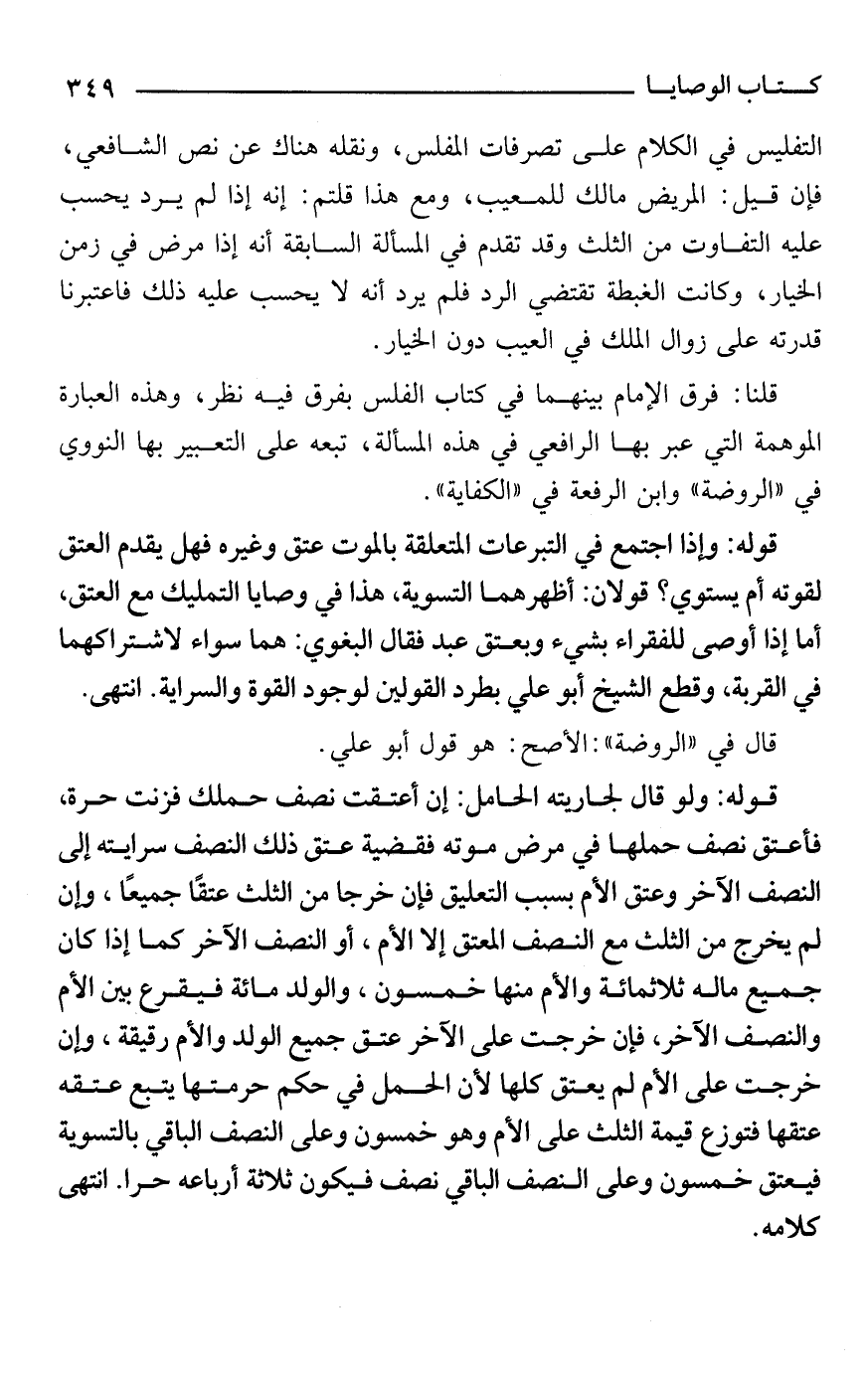 قوله: وإذا اجتمع في التبرعات المتعلقة بالموت عتق وغيره فهل يقدم العتق لقوته أم يستوي؟ قولان: أظهرهما التسوية، هذا في وصايا التمليك مع العتق، أما إذا أوصى للفقراء بشيء وبعتق عبد فقال البغوي: هما سواء لاشتراكهما في القربة، وقطع الشيخ أبو علي بطرد القولين لوجود القوة والسراية. انتهى.