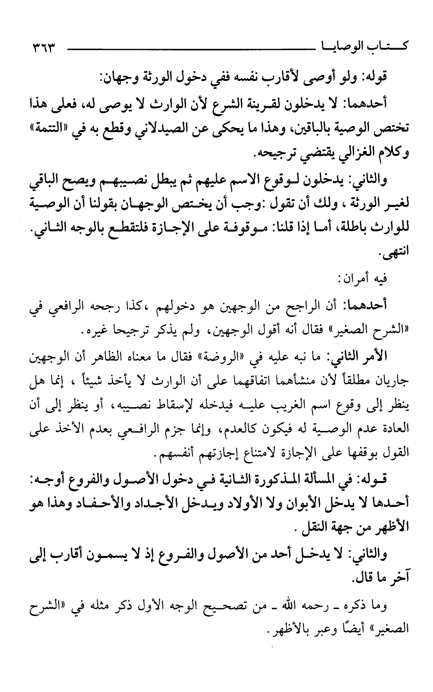 الأمر الثاني: ما نبه عليه في "الروضة" فقال ما معناه الظاهر أن الوجهين جاريان مطلقًا لأن منشأهما اتفاقهما على أن الوارث لا يأخذ شيئًا، إنما هل ينظر إلى وقوع اسم الغريب عليه فيدخله لإسقاط نصيبه، أو ينظر إلى أن العادة عدم الوصية له فيكون كالعدم، وإنما جزم الرافعي بعدم الأخذ على القول بوقفها على الإجازة لامتناع إجازتهم أنفسهم.