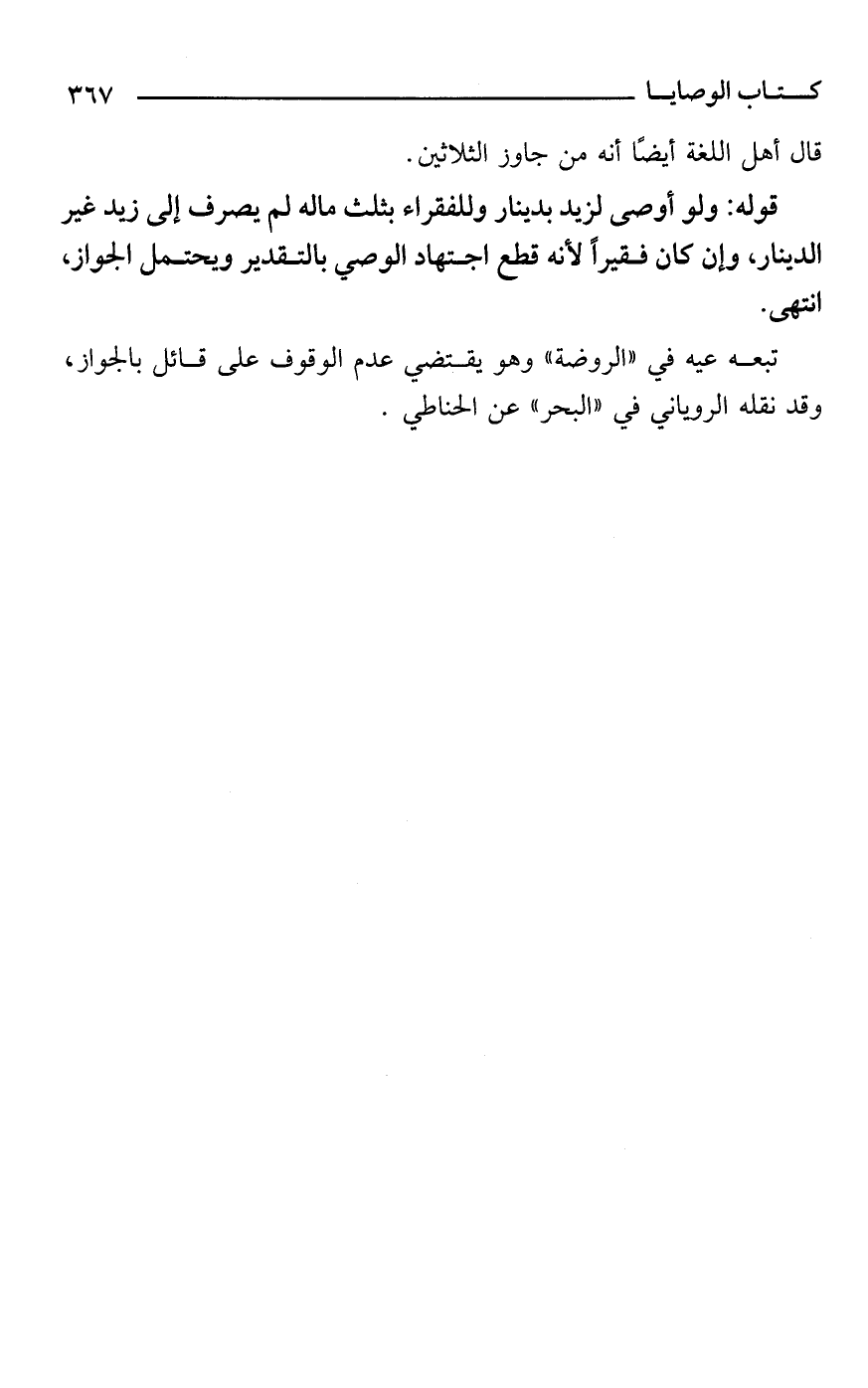 قوله: ولو أوصى لزيد بدينار وللفقراء بثلث ماله لم يصرف إلى زيد غير الدينار، وإن كان فقيرًا لأنه قطع اجتهاد الوصي بالتقدير ويحتمل الجواز، انتهى.