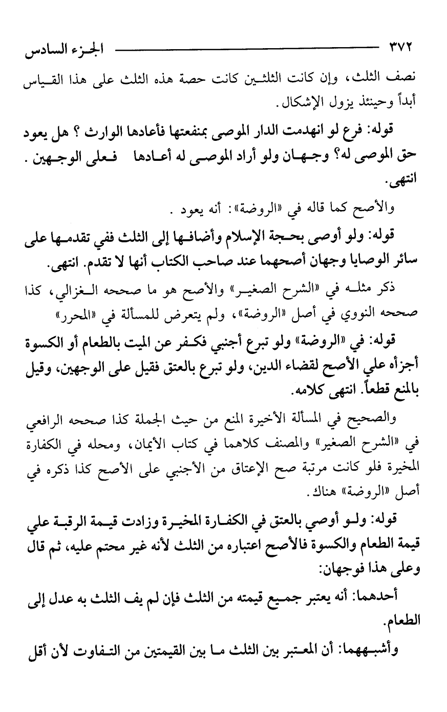 قوله: ولو أوصي بالعتق في الكفارة المخيرة وزادت قيمة الرقبة علي قيمة الطعام والكسوة فالأصح اعتباره من الثلث لأنه غير محتم عليه، ثم قال وعلى هذا فوجهان: