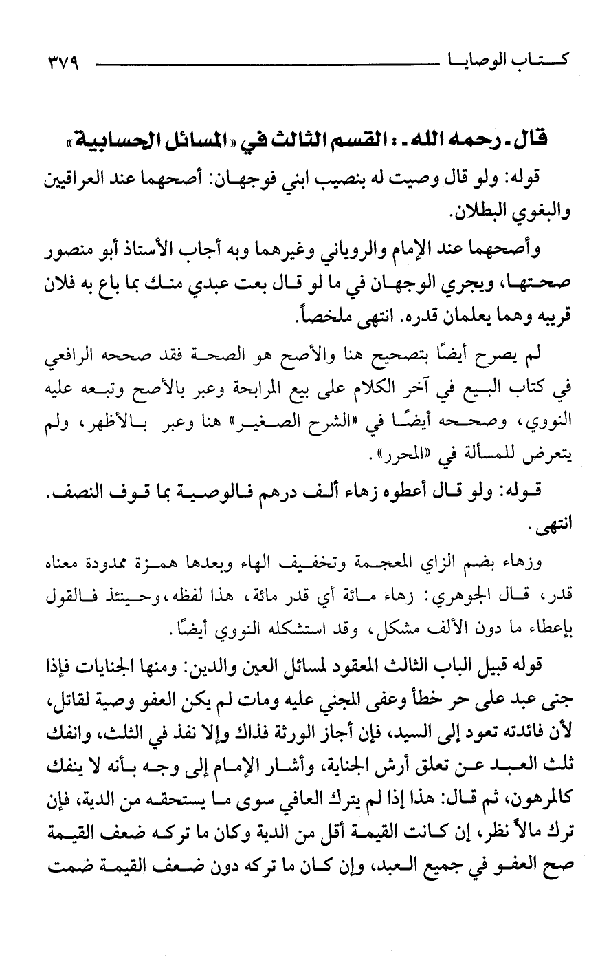 قال -رحمه الله-: القسم الثالث: في "المسائل الحسابية"