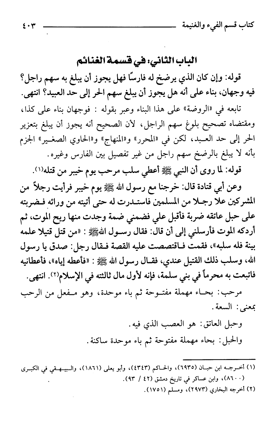 الباب الثاني: في قسمة الغنائم