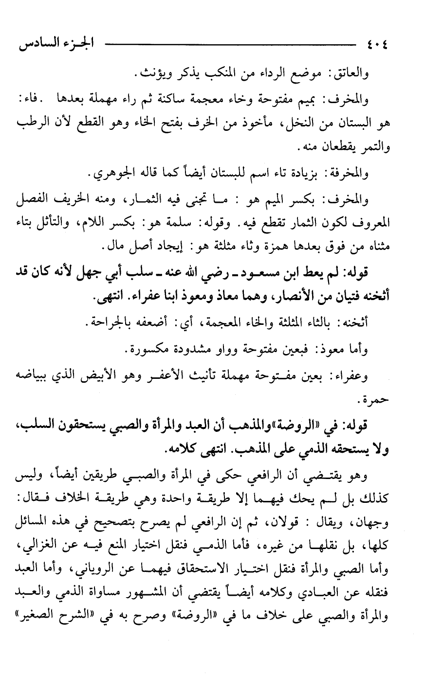 قوله: في "الروضة" والمذهب أن العبد والمرأة والصبي يستحقون السلب، ولا يستحقه الذمي على المذهب. انتهى كلامه.