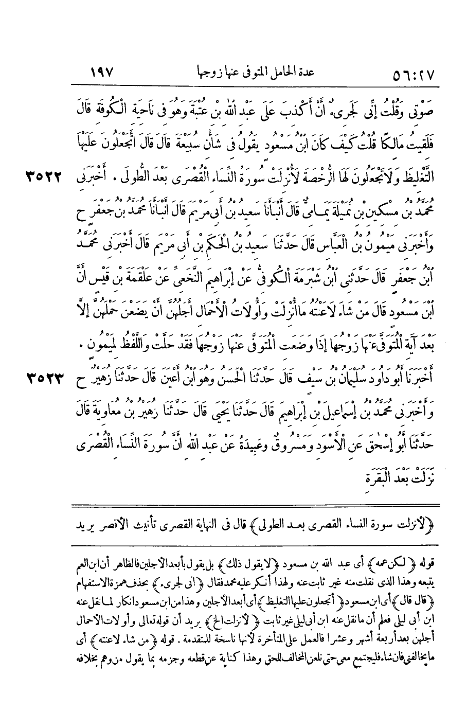 [3521] لَأُنْزِلَتْ سُورَةُ النِّسَاءِ الْقُصْرَى بَعْدَ الطُّولَى قَالَ فِي النِّهَايَةِ الْقُصْرَى تَأْنِيثُ الْأَقْصَرِ يُرِيدُ سُورَةَ الطَّلَاقِ وَالطُّولَى سُورَةُ الْبَقَرَةِ لِأَنَّ عِدَّةَ الْوَفَاةِ فِي الْبَقَرَةِ أَرْبَعَةُ أَشْهُرٍ وَعَشْرٍ وَفِي سُورَةِ