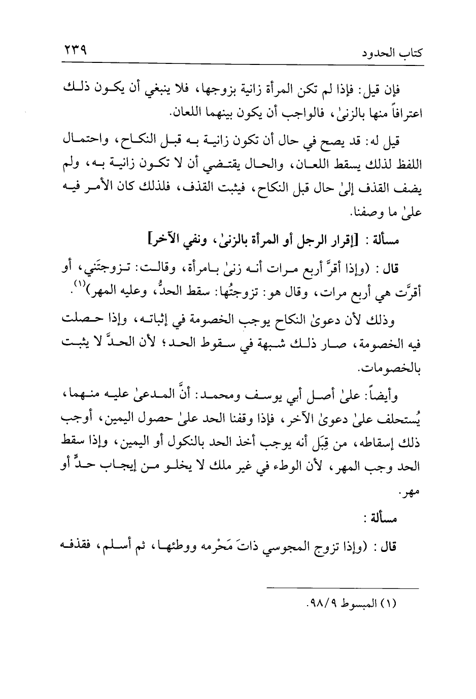 وأيضًا: على أصل أبي يوسف ومحمد: أن المدعى عليه منهما، يُستحلف على دعوى الآخر، فإذا وقفنا الحد على حصول اليمين، أوجب ذلك إسقاطه، من قبل أنه يوجب أخذ الحد بالنكول أو اليمين، وإذا سقط الحد وجب المهر، لأن الوطء في غير ملك لا يخلو من إيجاب حد أو مهر.