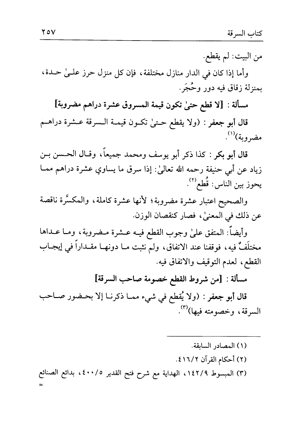 قال أبو جعفر: (ولا يقطع في شيء مما ذكرنا إلا بحضور صاحب السرقة، وخصومته فيها).